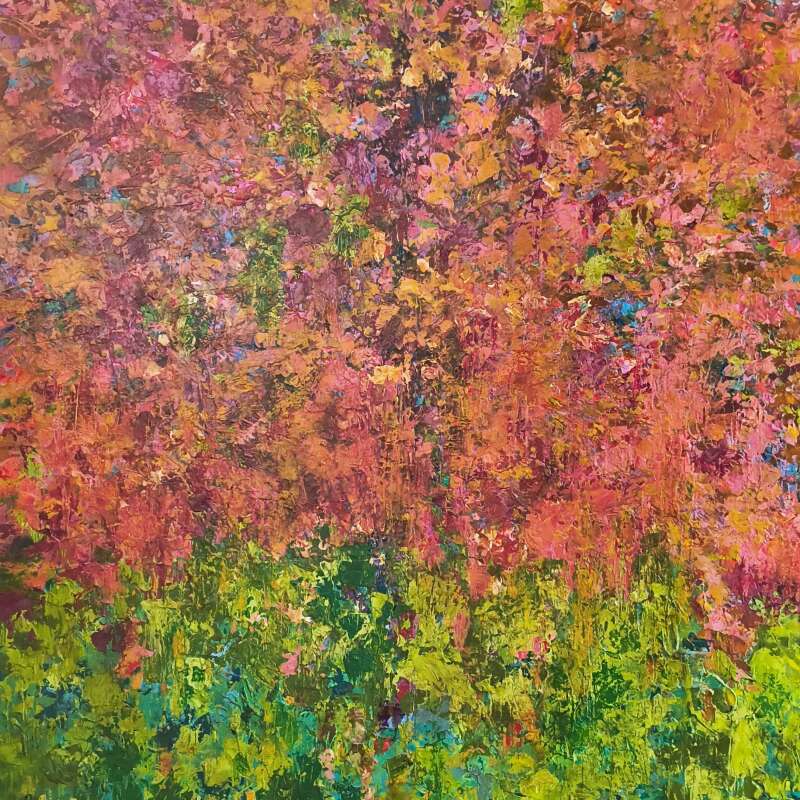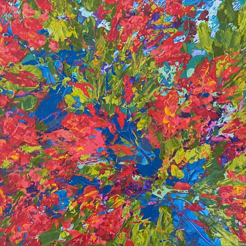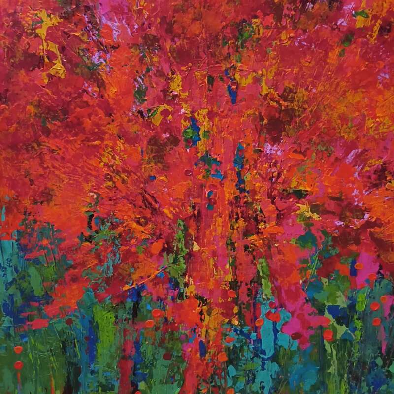 Kimberley is self taught and lives in the Niagara region which serves as inspiration for her paintings. She began painting abstracted landscapes but her work has evolved into pure abstracts and non-representational pieces. Using a palette knife and bright saturated colours she creates layers, texture and depth. The viewer is left to interpret what they see. She has shown her work at galleries in Toronto, Niagara on the Lake, Kitchener and at Art Gallery Burlington