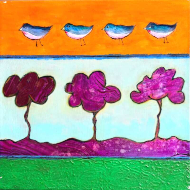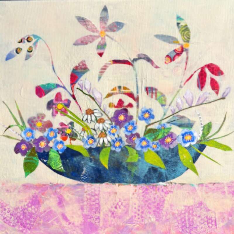 Recently, Nicki has expanded her practice to include collage, using hand-printed papers created on a gel plate. Her work celebrates rediscovery, creativity, gardening and the occasional political commentary.